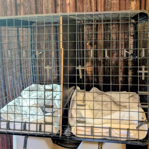 Hundbur för två hundar i storlek som schäfer. Passar för transport eller tillfälligt inhysande av djur.