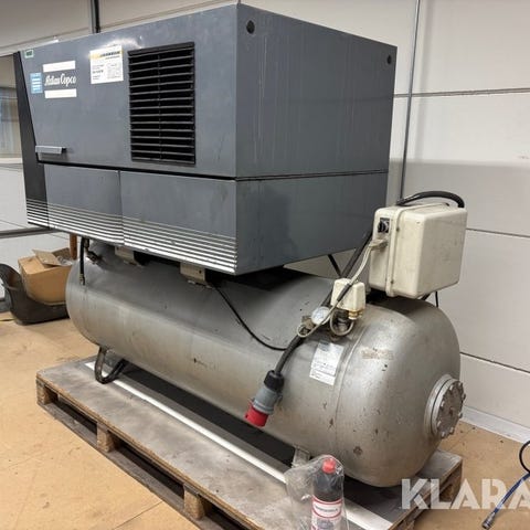En redig och robust kompressor i toppskick. Ingen rost eller andra skador. Enheten är monterad på hjul.