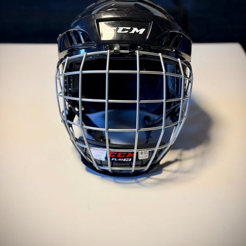 Säljer en CCM FL40 med galler i bra skick. Justerbar storlek, perfekt för ungdom, nybörjare eller motionshockey. Inga sprickor, ren, fräsch och hel.