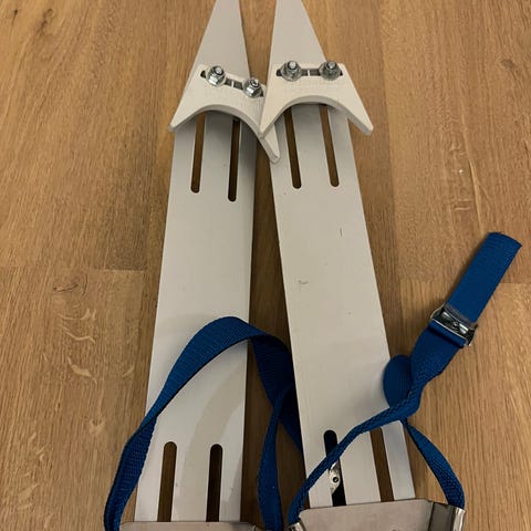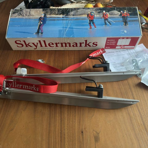 Skyllermarks långfärdsskridskor 50cm långa med ställbara fästen för att passa olika storlekar av pjäxa.