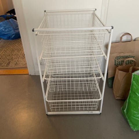 Den med två trådbackar har måtten (BxDxH) 41x60x70 och den med fyra 44x54x70. 200kr/st.