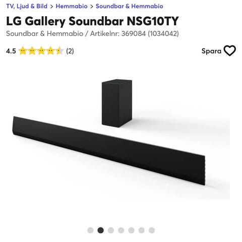 Jag säljer en ny LG NSG10TY soundbar i originalförpackning, oöppnad. Jag har en stereo och behöver ingen soundbar. Nytt pris i butik: 9 900 kr!