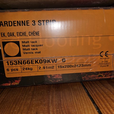 Jag har totalt 70 kvm som ligger i sin orginalkartong, nypris är 800 kr/ kvm. Jag säljer för 300 kr/ kvm. Har det i mitt förråd i Viken