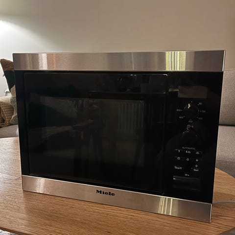 Miele mikrovågsugn i vit färg. Utrustad med standardfunktioner för uppvärmning och tillagning. Designad för enkel användning och integrering i köksmiljö.