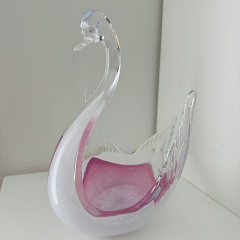 båtformad glasskål i underfång i violett från Sea glasbruk