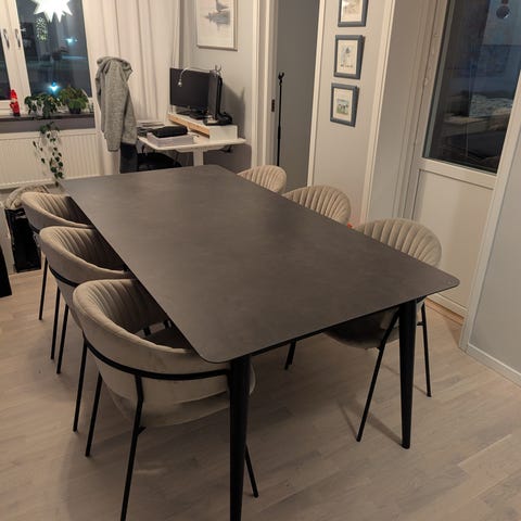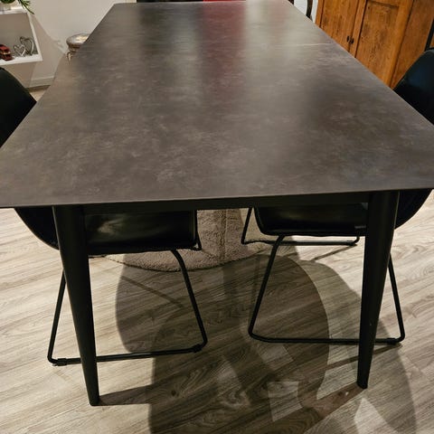 Fint gediget matbord från Mio i gråmelerad keramik med ben i svartlackerad metall. Värmebeständig yta i keramik som är beständig mot vätskor.