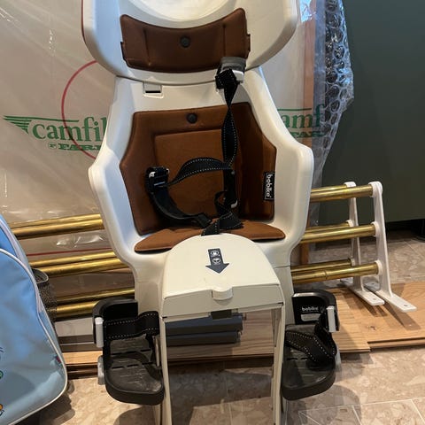 Hamax barnstol i storlek 22. Produkten är utformad för att monteras på cykel och har säkerhetsfunktioner för barnets komfort och skydd under cykelturen.