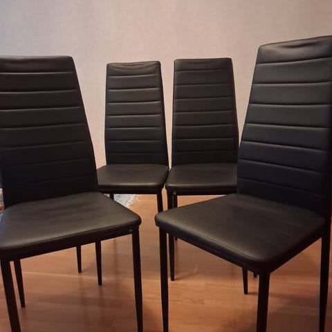 Fyra stycken pinnstolar OLLE i svart. Synliga skråmor i färgen. Endast upphämtning.
