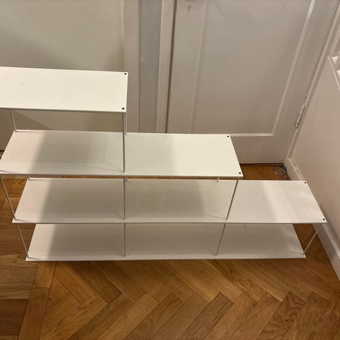 Mio Thelma vägghylla med minimalistisk design i trä och metall. Hyllan har eleganta linjer och är avsedd för att hängas på väggen, lämplig för förvaring och visning av föremål.