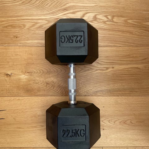 Fin hantel med 2 st 1,25 samt 2 st 2,25 kg viktskivor för totalt 7kg plus stång/lås.