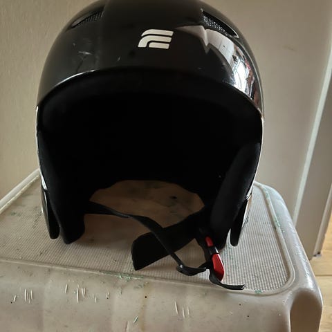 Everest barnskidhjälm svart med svarta skidglasögon.