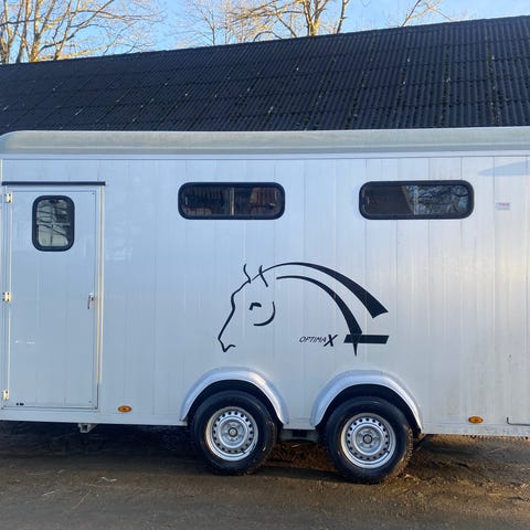 Fint skick. Sadelkammare. Kompositgolv med gjuten gummimatta. Två axlar. Ligger bra på vägen. Kulhandske.