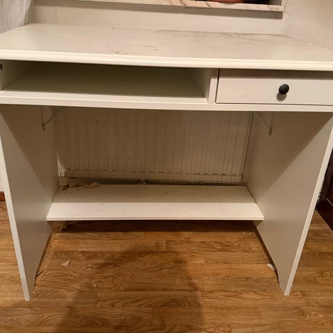 Två små nagg på bordet men syns inte mycket, fortfarande väldigt fin! Strukturerad och stark - har tidigare haft TV + konsol samt skolgrejer på den så den kan bära ganska tungt! 🙃