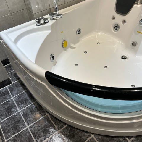 Oanvänt badkar i rosa färg med måtten 92x51x65 cm. Perfekt för dig med begränsat utrymme i badrummet (eller balkongen för den delen om sommarn).