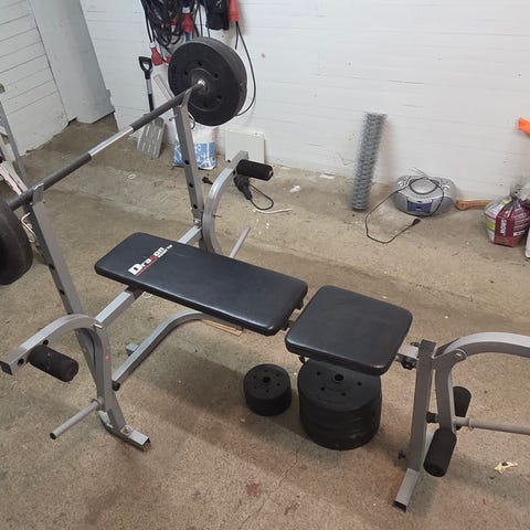 Bänken är anpassningsbar, rak bänk och incline. Även benspark och liggande ben curl.