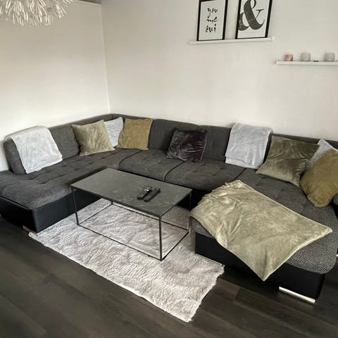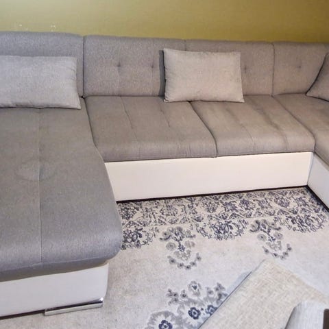Stor bäddsoffa u-soffa i fint använt skick. Köpt på xxxlutz. Stått i gästrum och säljes nu pga ombyggnation. Nypriset var 24 000:- med tillköpt bäddmadrass 140 cm som ingår och är fräsch. Enkel att dra ut. Om intresse finns är bärhjälp bra då den är rätt tung, speciellt förvaringsdelen där bäddmadrass kan förvaras.