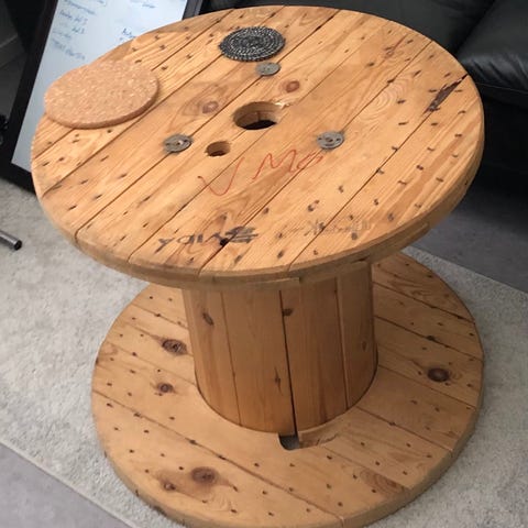 Litet sött soffbord/avlastningsbord. 100x50x40,5. Några små repor och några fettfläckar från en läckande tassprotective som jag hade i en korg där(täck med en bordstablett tex ), se foton.
