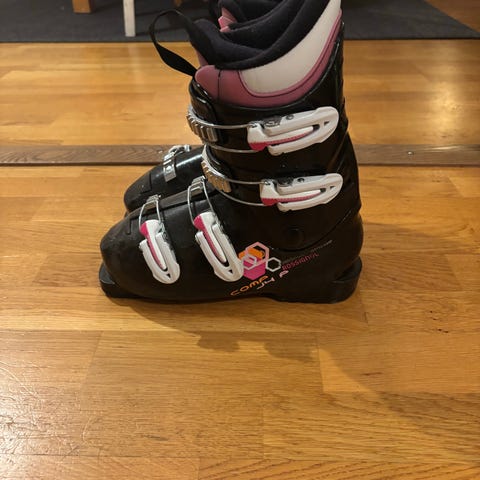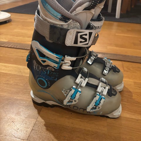 Ett par välanvända men fullt fungerande herr Salomon pjäxor i storlek 26.5. Inga fel endast slitningar på dekor och lite på tyg på plösen. Vid frågor eller vilja av fler bilder hör av er!