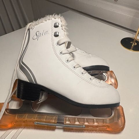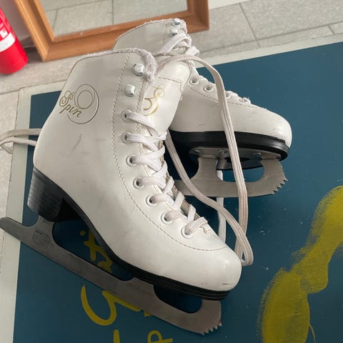 Spin skridskor i barnstorlek 33 med fodrad insida i bra skick. Sitter bra på foten!