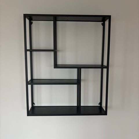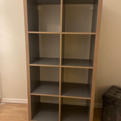 IKEA vit bokhylla med fyra hyllplan i trämaterial. Passar för förvaring av böcker, prydnader eller andra föremål i hemmet.