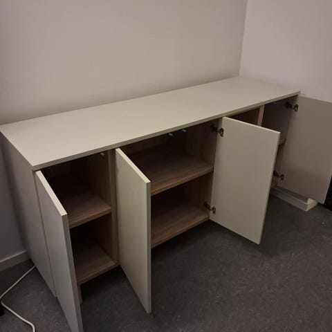 Förvaringsmöbel Stuva från IKEA. Totalt är det sex moduler, där varje modul är ca 60×60×60cm. Några är skåp med ett hyllplan. Några är två större lådor. Några är en större låda och två små lådor. Lådindelningar medföljer, se bild två. 2500kr för allt. Hämtas på plats hos oss. Mycket fint skick.