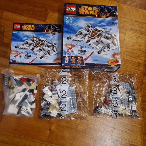 Lego Star Wars set 75259 Snowspeeder och 75262 Imperial Dropship. Båda seten inkluderar instruktionsböcker och figurer. Både bitar, minifigurer och instruktionsböcker är i väldigt bra skick.
