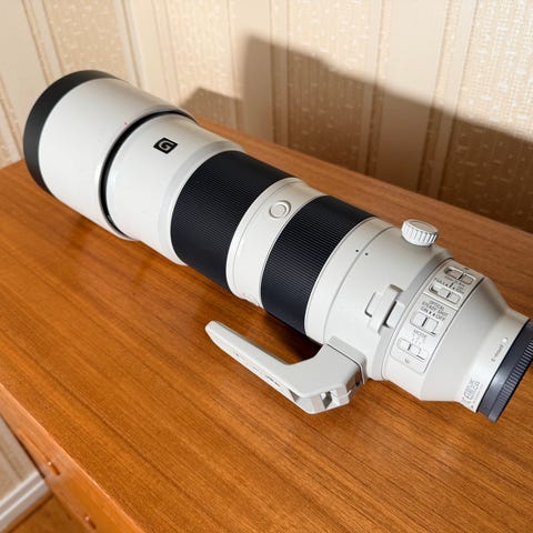 Sony telezoom objektiv 200-600mm med kamouflageklädsel och medföljande extra stativfäste med arca swiss.