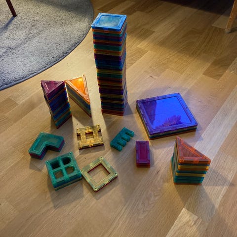 Magnettavla med stora och små bokstäver samt siffror. Tavlan har stöd och går på ett smart sätt att packa ihop. Se foton.