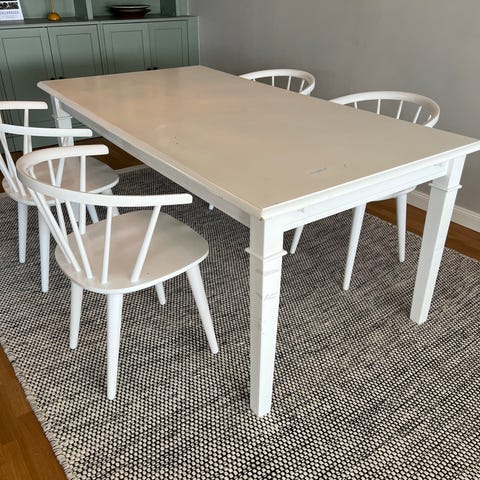Gråbetsat köksbord med vitmålade ben
