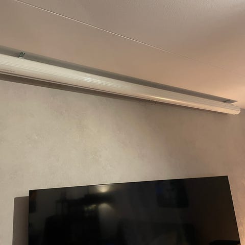 Motordriven duk, 200cm, inkl fästen och knappsats för upp/ner. Fjärrkontroll (lite opålitlig) ingår även, Fint skick. Inga skador på duken. Euroscreen. Skickas EJ!