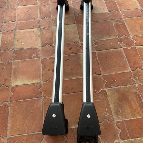 Cykelställ för en cykel där du tar av framhjulet och sedan lätt lastar cykeln på Taket . Passar på gamla typen takräcken med fyrkants profil. Finns I Hisings Backa . Kan lämnas i Göteborg centralt efter Ök.