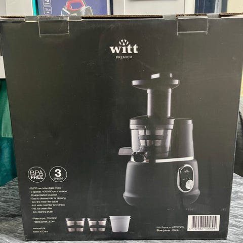 Juicemaskin från märket Witt by Kuvings. Maskinen är tillverkad i rostfritt stål och plast.