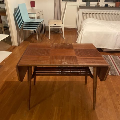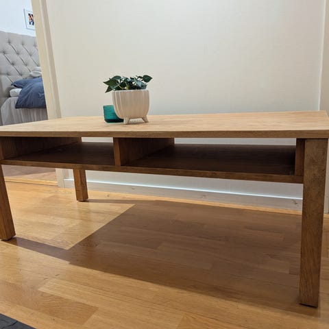 Välanvänt soffbord i trä.