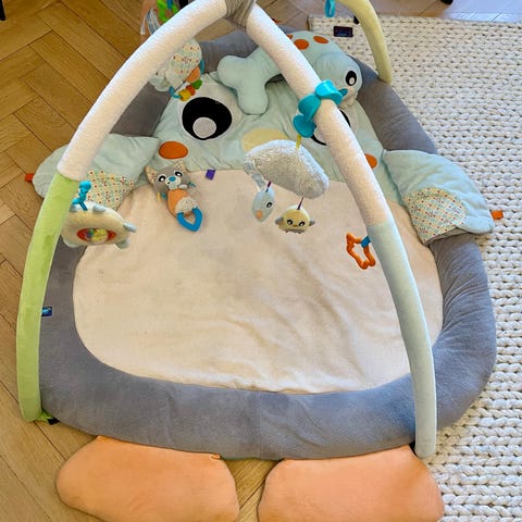 Fint gym i mjuka färger för de minsta. Med tillhörande hängande leksaker pch gosedjur! Speglarna är något repiga. Märket är playgro.