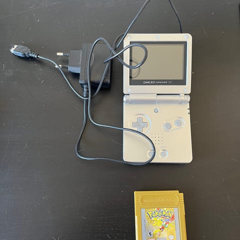 Nintendo Advance SP med BlackThorne och laddsladd.