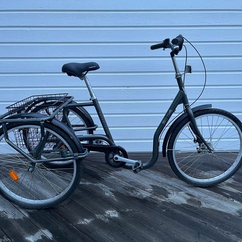 Sparsamt använd trehjuling säljes i nära nyskick. Monark, 3 växlar, fot och handbroms, belysning