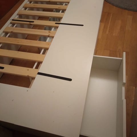 Sängeam med madrass, använd som barnsäng 90×200. Fint begagnat skick.