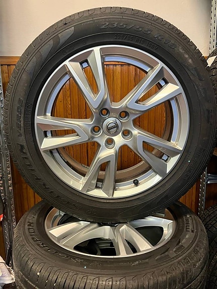 Nu har jag fått in dessa superfräscha original uppsättning i absoluta NYSKICK och helt nya dubbdäck 235/60/R18 Michelin X-ICE North 4 107 T (Nypris ca 2500-2900kr/st). Finns TPMS sensorer.