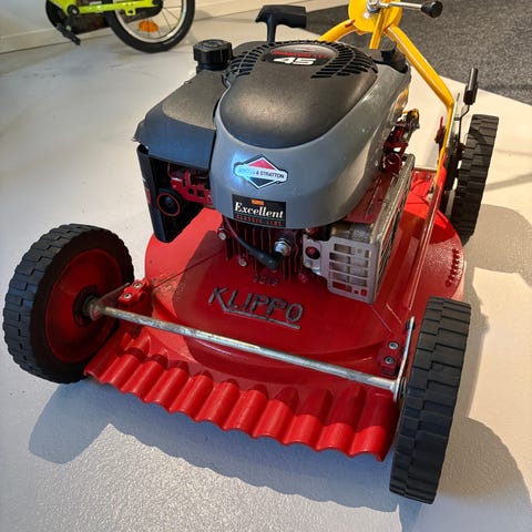 En rejäl Klippo med det stora 53 cm breda chassit. Bekvämt med drivning på framhjulen.