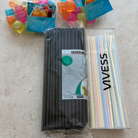 Säljer ett set med 6 böjbara silikonsugrör i fina färger, perfekta för både barn och vuxna.