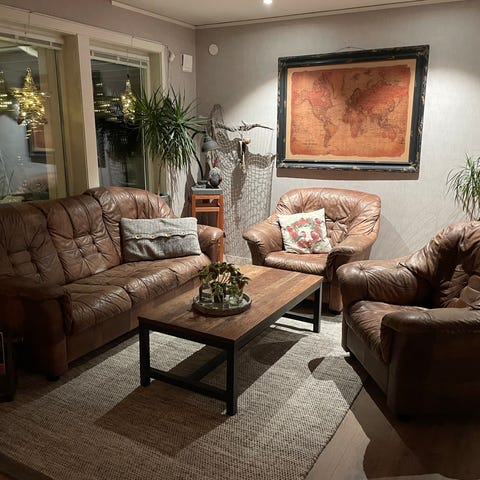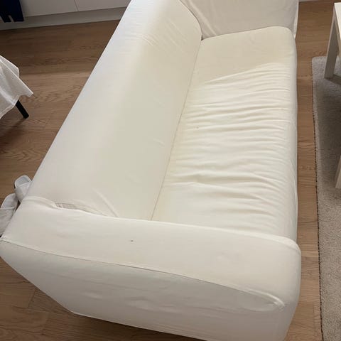 Solblekta bakom ryggstödet. /kudden bakom Men inget som störs . Stora sköna soffor