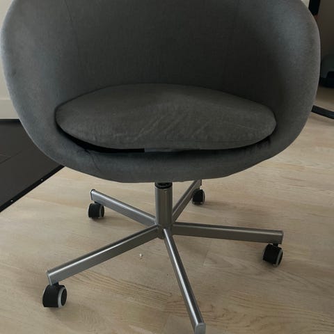 Säljer en gammal snurrstol i befintligt skick (förstora biler). Perfekt i hemmet för industriell look! Pris 800 kr. Sitthöjd ca 73 cm