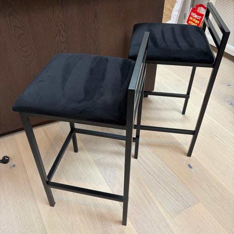Fyra svarta barstolar med stoppad sammets sits i mycket fint skick.