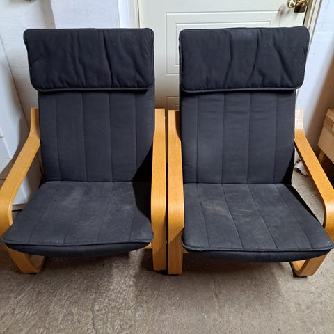 Poängfåtölj från IKEA med ljusgrå klädsel.