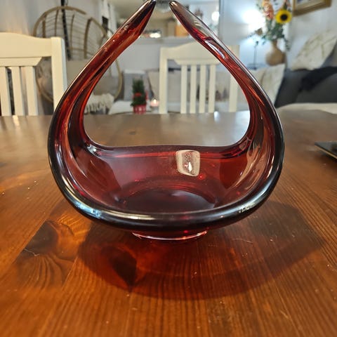 Färg: Vacker rubinröd/vinröd färg inkapslad i klart kristallglas (sommerso-stil).