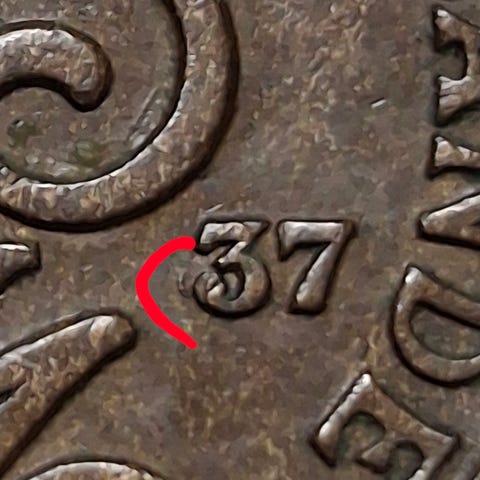 1 öre 1941 - med ompräglad 4! Rest nedtill.