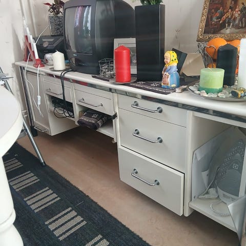 Vitt sidobord på hjul