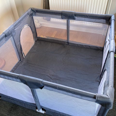 Färgglad lekhage i plast som du bygger ihop själv. Många delar - så går att variera stor eller liten. Med grind och lekpanel.