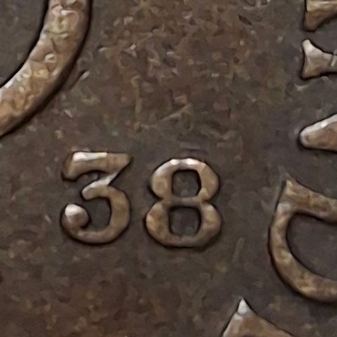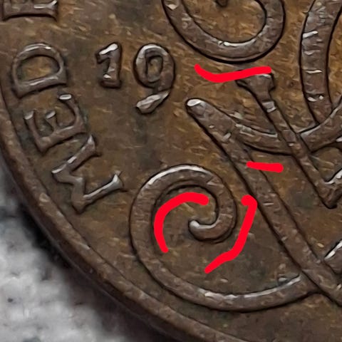 2 öre 1937 - ompunsad 3:a! Rest till vänster på 3.