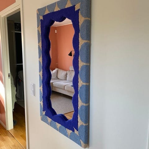 IKEA 90s Krabb spegel x 6 styken med vågformad design. Spegeln är avsedd för väggmontering. Väggfäste medföljer. Bredd: 20cm Höjd: 160cm